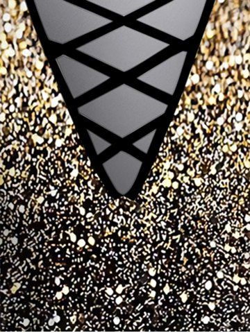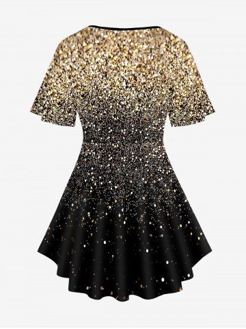 Plus Size 3D Sparkling Sequin Print Crisscross V Neck Short Sleeve T-Shirt