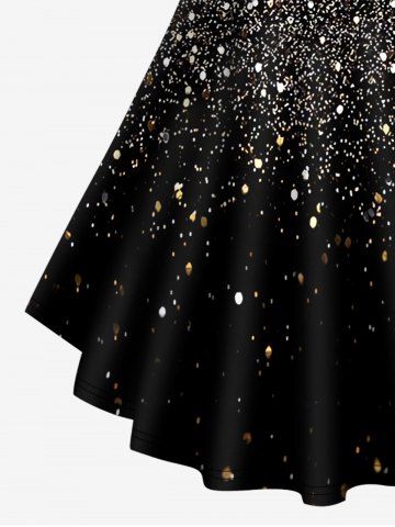 Plus Size 3D Sparkling Sequin Print Crisscross V Neck Short Sleeve T-Shirt - Black - 3x | Us 22-24