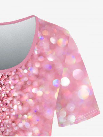 Plus Size 3D Sparkling Sequin Print T-shirt - Light Pink - Xs