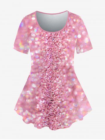 Plus Size 3D Sparkling Sequin Print T-shirt - Light Pink - 4x