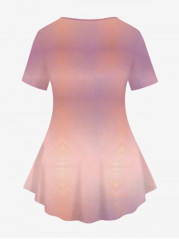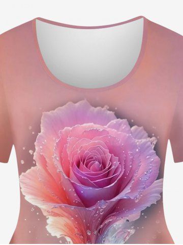 Plus Size 3D Water Droplet Tornado Flower Print Ombre T-shirt - Light Pink - S