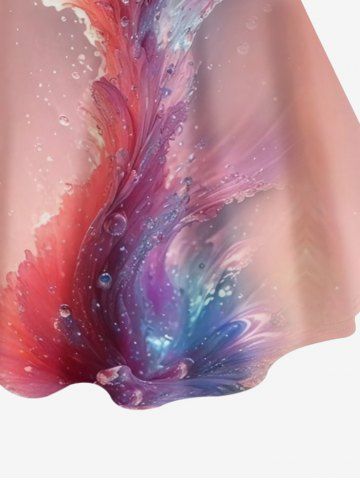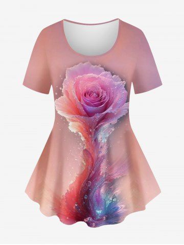 Plus Size 3D Water Droplet Tornado Flower Print Ombre T-shirt - Light Pink - 2x