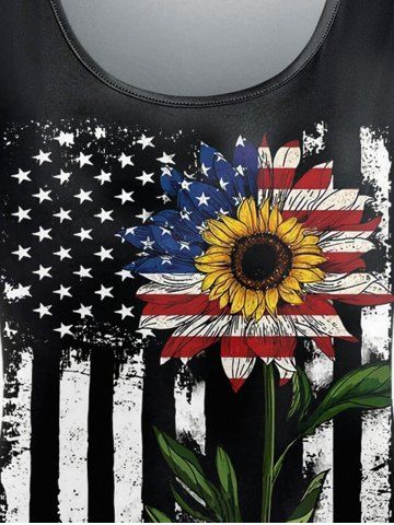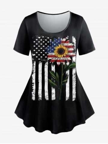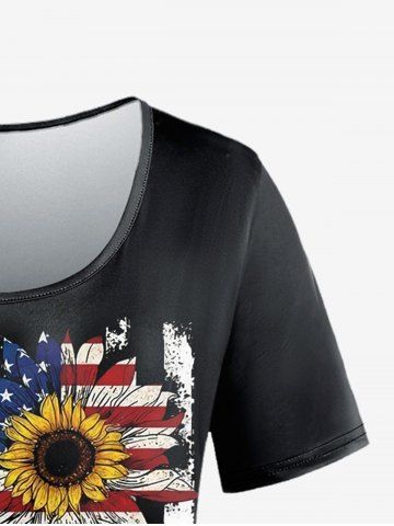 Plus Size American Flag Sunflower Printed Patriotic Tee - Black - 4x | Us 26-28