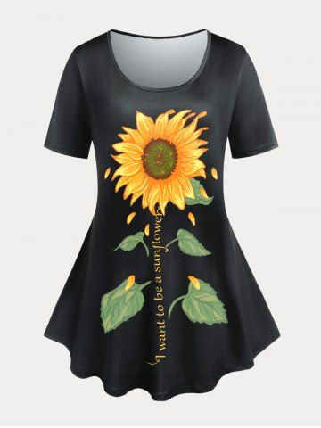 R*****a5Plus Size and Curve Sunflower Letter Print Graphic TeeColor: BLACK Size: M | US 10I absolutely love this top! sunflowers are my favorite flower this top is great with my capris or shorts I'm going to have fun wearing it all year thanks rosegal.