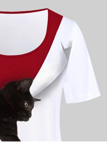 k*****e5Plus Size Animal Cat and Mouse Print TeeColor: DEEP RED Size: 3X | US 22-24Fits great. Material super soft and silky. Item is as pictured. Size is perfect.