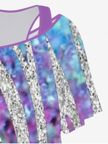 Plus Size Basic Solid Racerback Tank Top and Glitter Sparkling Sequins Ombre Print Skew Neck Batwing Sleeves T-shirt Set - Purple - L