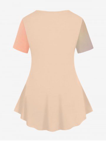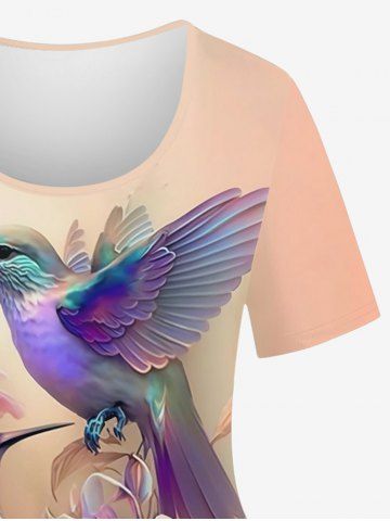Plus Size Birds Flowers Watercolor Ombre Print T-shirt - Champagne - L