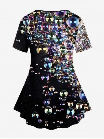 Plus Size Bubble Glitter Print T-shirt - Black - S