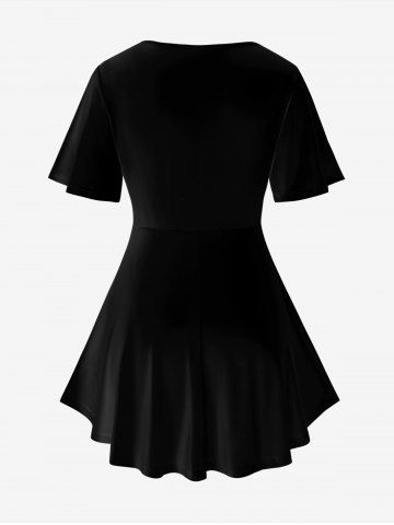 S*****n5Plus Size 3D Crisscross V-Neck Butterfly Lace Up Print Short-Sleeved T-ShirtColor: BLACK Size: L | US 12love this top so much that I have purchased every color and pattern that rosegal offers. I get so many compliments every time I wear it. Great length.