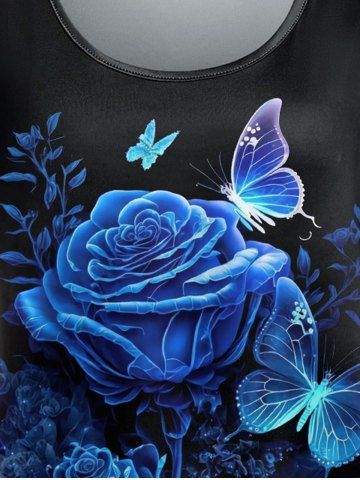 Plus Size Butterfly Flower Print Short Sleeves T-shirt - Black - 1x