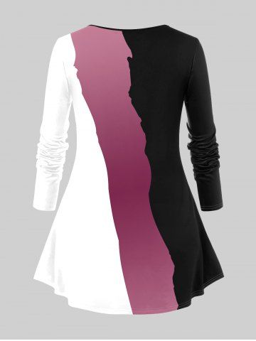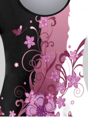 Plus Size Butterfly Flower Printed Colorblock Long Sleeves Tee - Black - 4x | Us 26-28