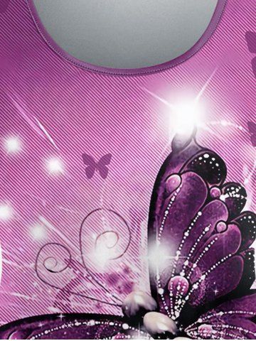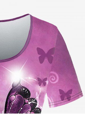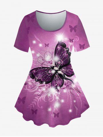 Plus Size Butterfly Glitter Print Short Sleeves T-shirt - Purple - 6x