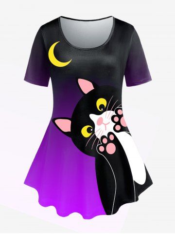 J*****i5Plus Size Cartoon Cat Moon Printed Ombre TeeColor: PURPLE Size: 3X | US 22-24Really cute and fun top, fits well and I get lots of attention when wearing it.