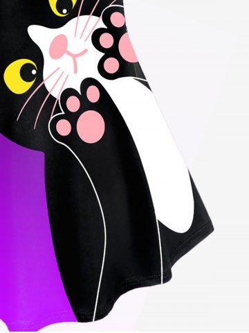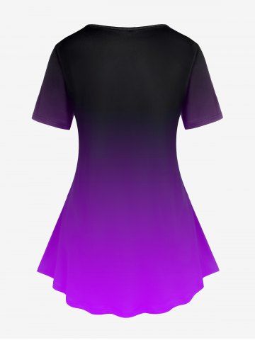 Plus Size Cartoon Cat Moon Printed Ombre Tee - Purple - 3x | Us 22-24