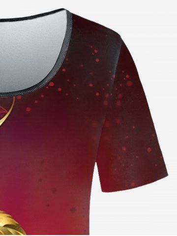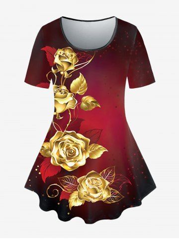 1*****15Plus Size Casual Rose Print TeeColor: RED Size: 1X | US 14-16Very loose and comfy. The length is perfect . I usally I am large but this is a xl.