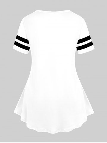 C*****i5Color: WHITE Size: 4XI absolutely love this shirt. The pattern is perfect. It feels very soft. I got the whole outfit, shirt and pants. The colors match and it fits well. I think that it flares at just the right spot.
