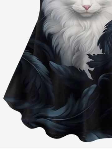 Plus Size Cat Feathers Print T-shirt - Black - Xs