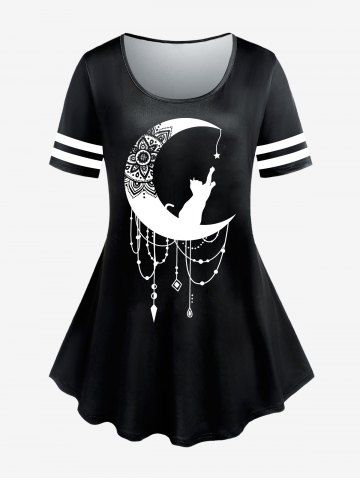 Graphic Tees > Plus Size Cat Moon Printed Two Tone T Shirt