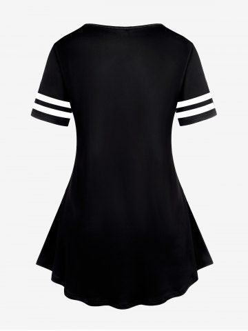 Plus Size Cat Moon Printed Two Tone T Shirt - Black - 1x | Us 14-16