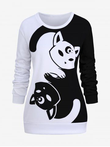 Plus Size Cat Moon Star Print Two Tone Sweatshirt - Black - 4xl