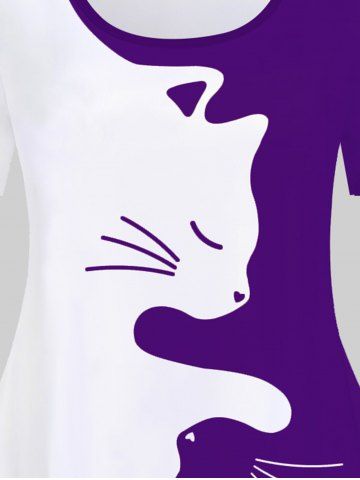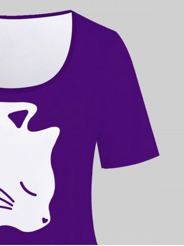Plus Size Cat Pattern Two Tone Short Sleeves Tee - Purple - 3x | Us 22-24