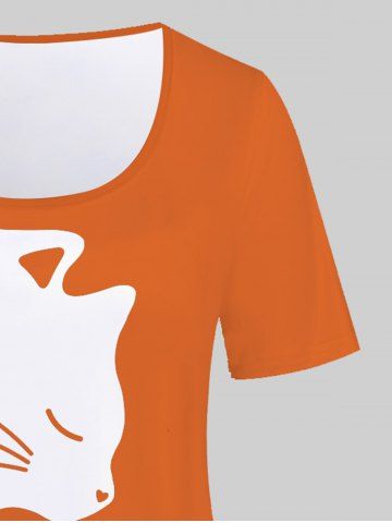 Plus Size Cat Pattern Two Tone Short Sleeves Tee - Orange - 4x | Us 26-28