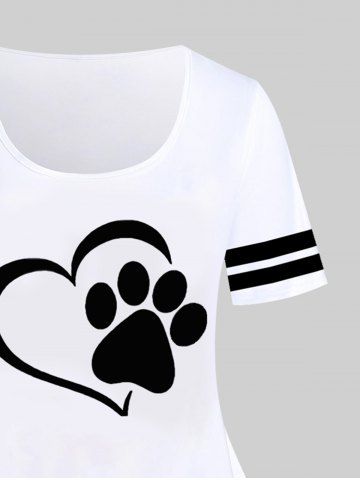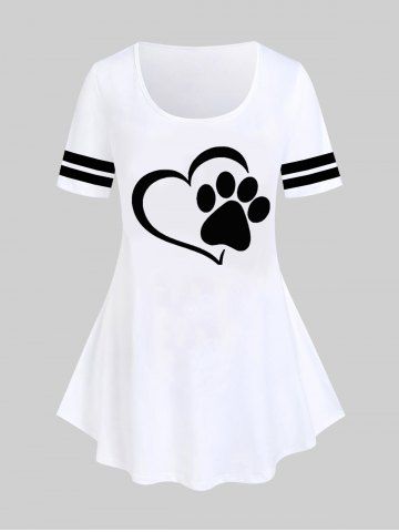 Plus Size Cat Paw Heart Printed Short Sleeves Tee - White - M | Us 10