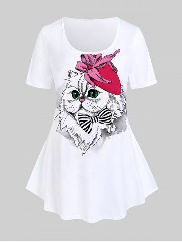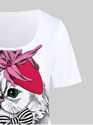 Plus Size Cat Printed Short Sleeves Tee - White - 5x | Us 30-32