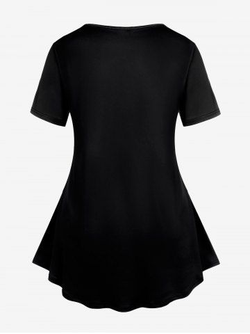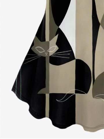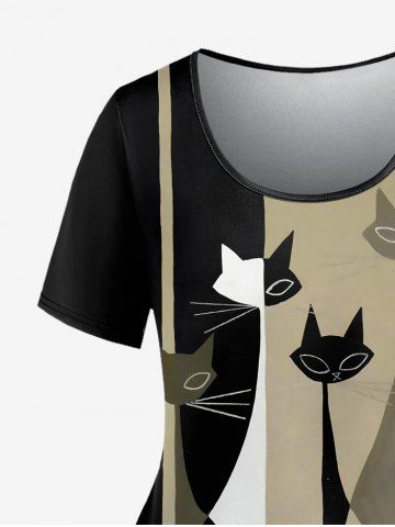 Plus Size Cats Colorblock Glitter Print T-shirt - Black - 4x
