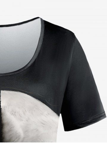 Plus Size Cats Print Short Sleeves T-shirt - Black - S