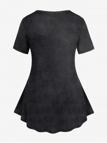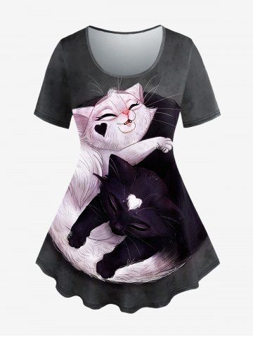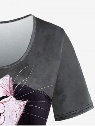 Plus Size Cats Print Short Sleeves Tee - Dark Gray - Xs