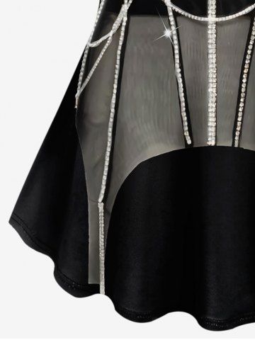 Plus Size Chains Glitter Fitted Dress 3D Print T-shirt - Black - L