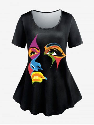 Plus Size Chinese Style Peking Opera Mask Print Tee - Black - 3x | Us 22-24