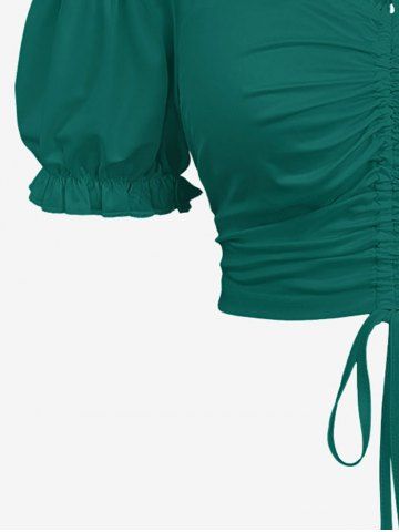 Plus Size Cinched Ruched Ruffles Cold Shoulder Cami Top - Green - 2x