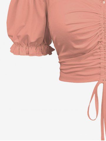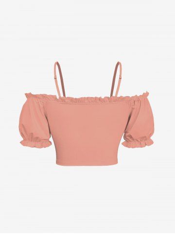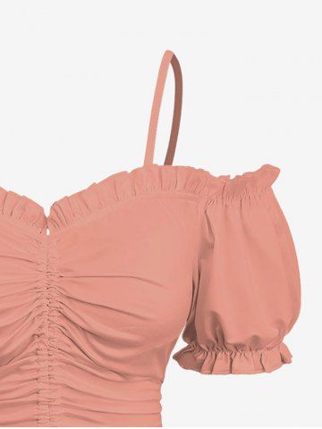 Plus Size Cinched Ruched Ruffles Cold Shoulder Cami Top - Coral Pink - Xs