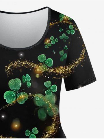 Plus Size Clover Leaf Plant Star Sparkling Sequin Glitter 3D Print T-shirt - Black - 4x