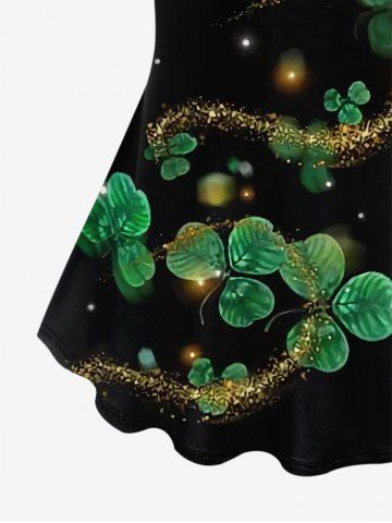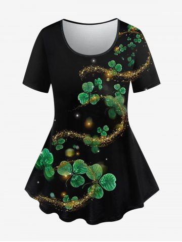Plus Size Clover Leaf Plant Star Sparkling Sequin Glitter 3D Print T-shirt - Black - 5x