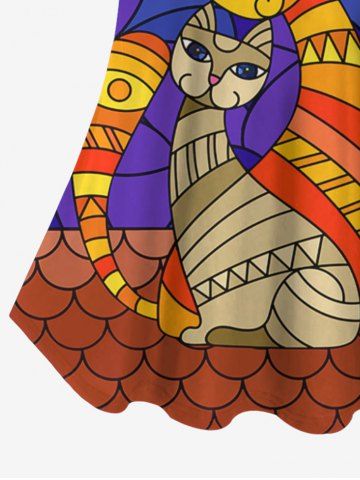 Graphic Tees > Plus Size Cold Shoulder Cat Fish Scale Moon Cloud Colorblock Print Cami T-shirt