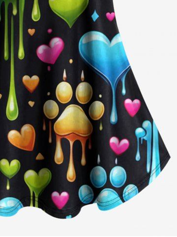 Plus Size Cold Shoulder Cat Paw Heart Paint Drop Print Cami T-shirt - Black - 5x