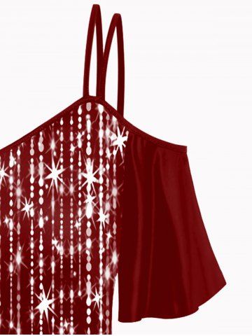 Plus Size Cold Shoulder Glitter Print T-shirt - Deep Red - 3x | Us 22-24