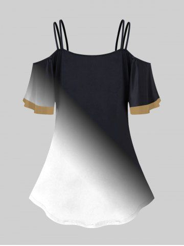 Plus Size Cold Shoulder Heart Flower Print Ombre Cami T-shirt - Black - Xs