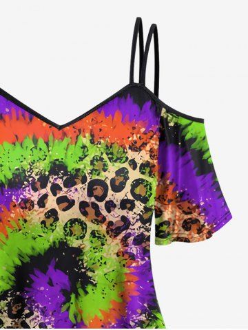Plus Size Cold Shoulder Leopard Spiral Tie Dye Print Cami T-shirt - Multi-a - 4x