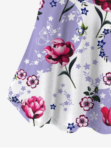 Plus Size Cold Shoulder Rose Flower Butterfly Stars Colorblock Print Cami T-shirt - Light Purple - 5x