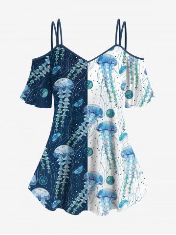 Plus Size Cold Shoulder Sailor Colorblock Patchwork Print Cami T-shirt - Multi-a - M