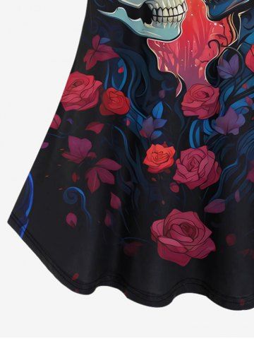 Graphic Tees > Plus Size Cold Shoulder Skull Lovers Ombre Rose Flower Moon Print Cami T-shirt