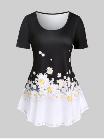 T*****55Plus Size Colorblock Daisy Print TeeColor: BLACK Size: 1X | US 14-16this outfit is too cute, bought legging to match, and ... great material and flattering for plus-size figures