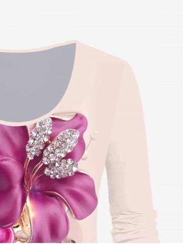 Plus Size Colorblock Floral Print T-shirt - Light Pink - M | Us 10