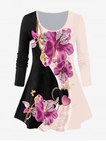 Graphic Tees > Plus Size Colorblock Floral Print T-shirt