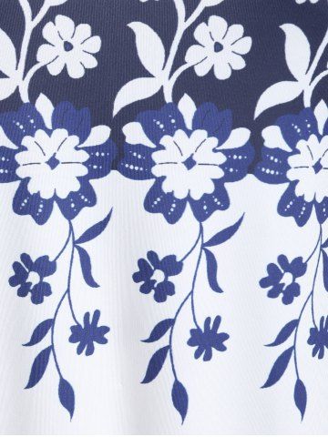 Plus Size Colorblock Floral Print Tee - Deep Blue - L | Us 12