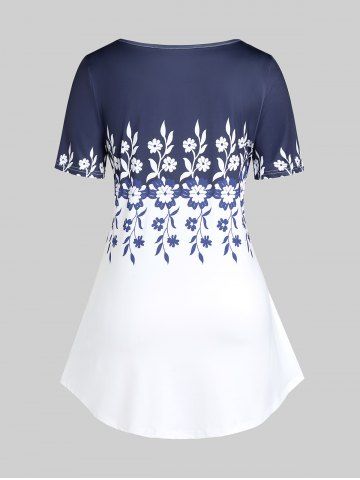 Plus Size Colorblock Floral Print Tee - Deep Blue - 3x | Us 22-24